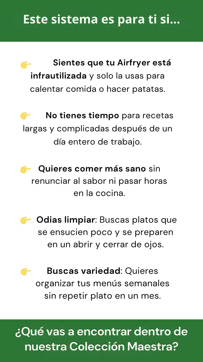 Está creado justamente para personas como tú: que ya tienen una Airfryer, pero quieren sacarle el máximo provecho sin complicarse ni perder tiempo.